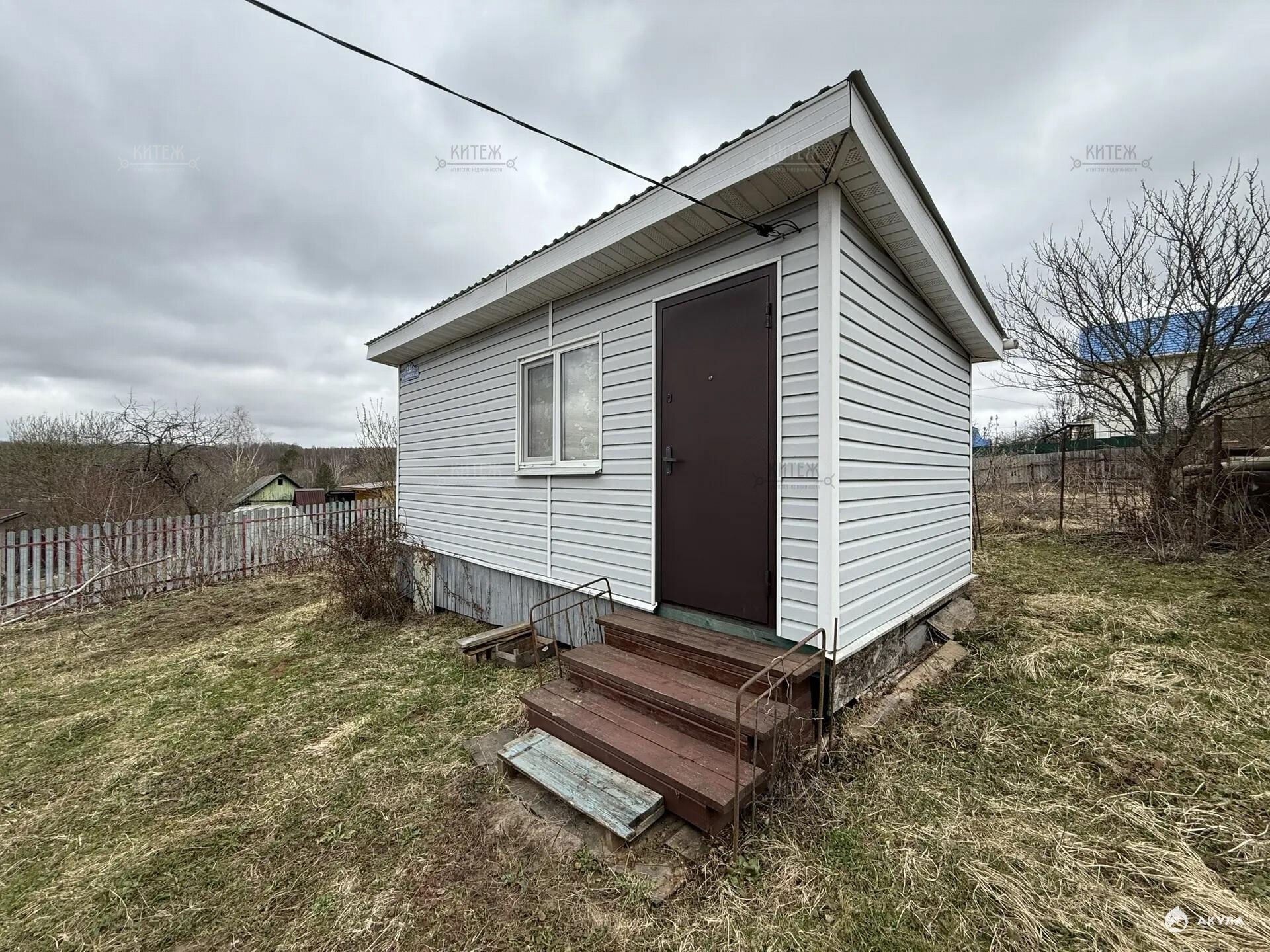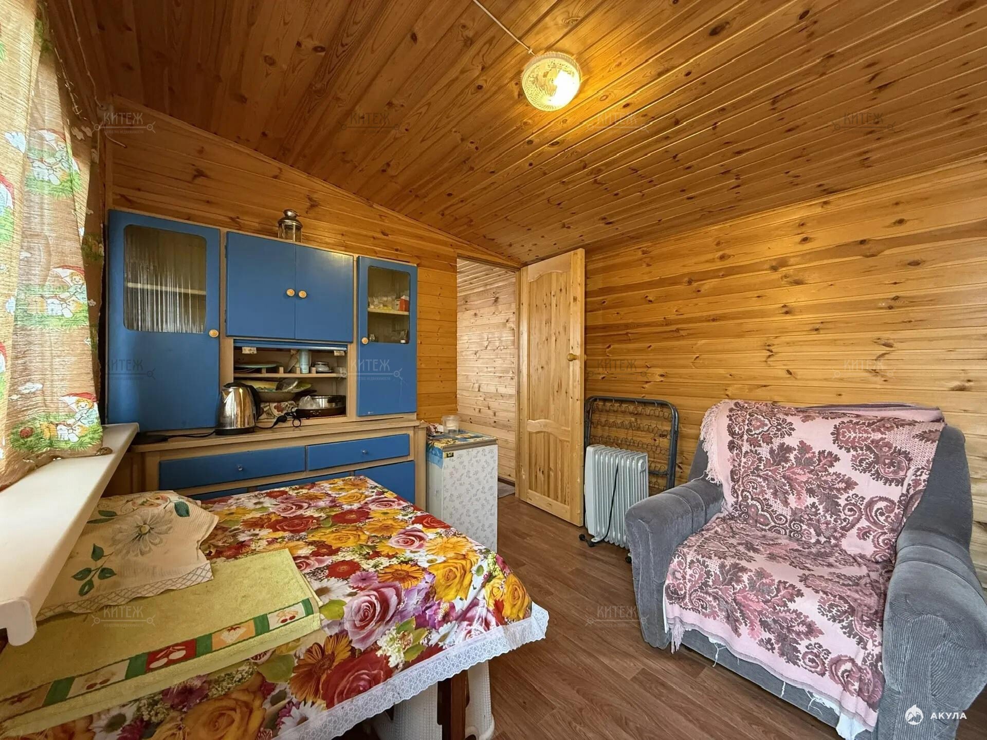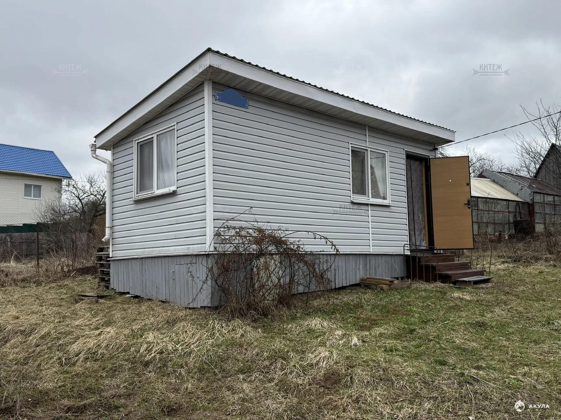 На участке расположен небольшой деревянный дачный домик площадью 22, 7 квадратных метра. Дом разделен на две комнаты - кухню с небольшим гарнитуром и комнату для отдыха. Окна ПВХ. Свет заведен в дом. Дом 2018 года постройки.