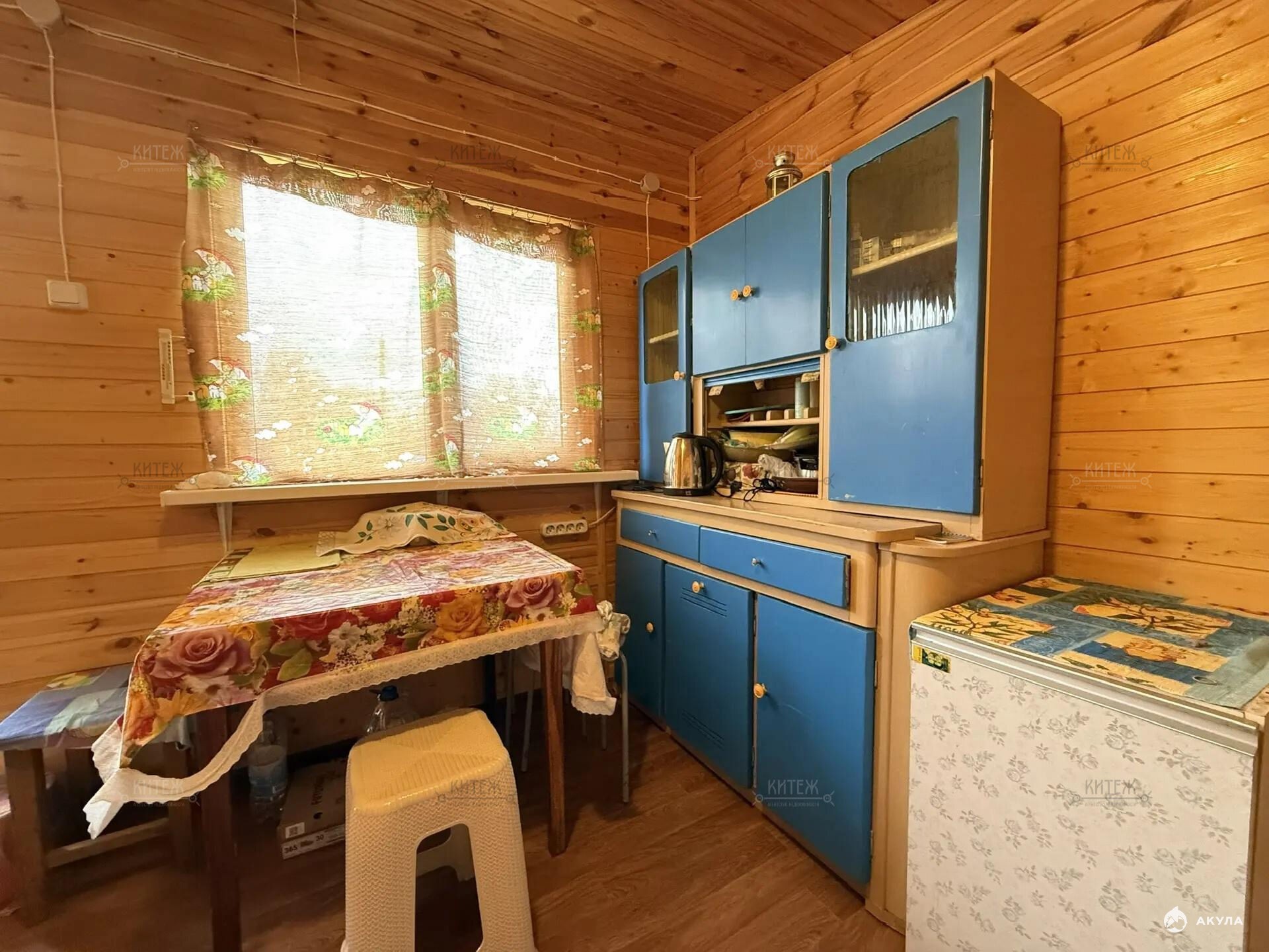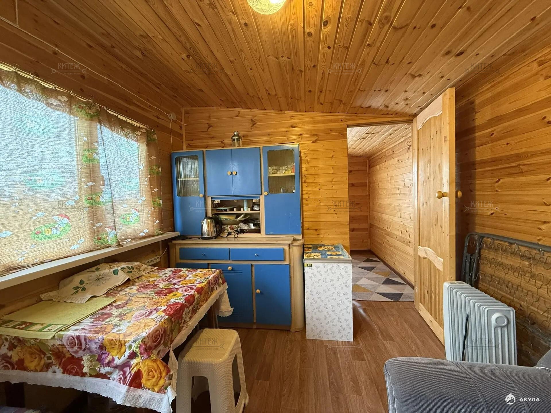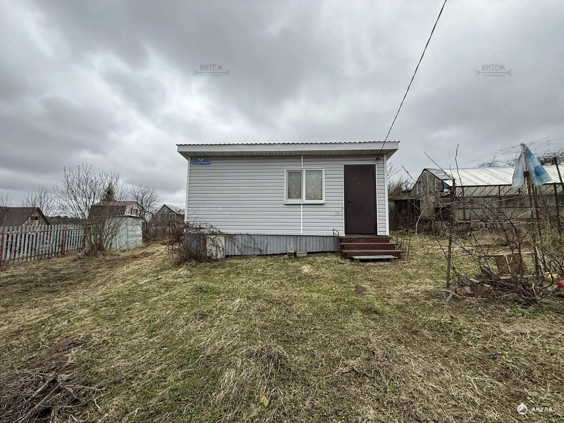 На участке расположен небольшой деревянный дачный домик площадью 22, 7 квадратных метра. Дом разделен на две комнаты - кухню с небольшим гарнитуром и комнату для отдыха. Окна ПВХ. Свет заведен в дом. Дом 2018 года постройки.