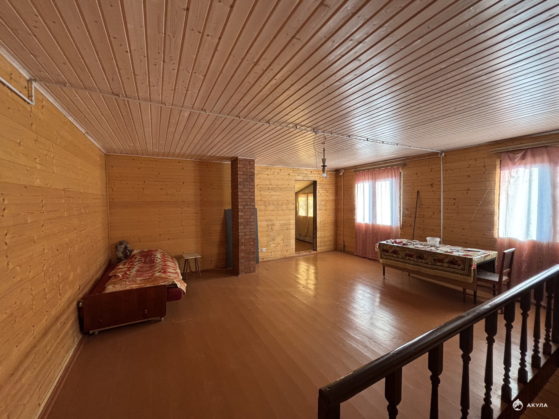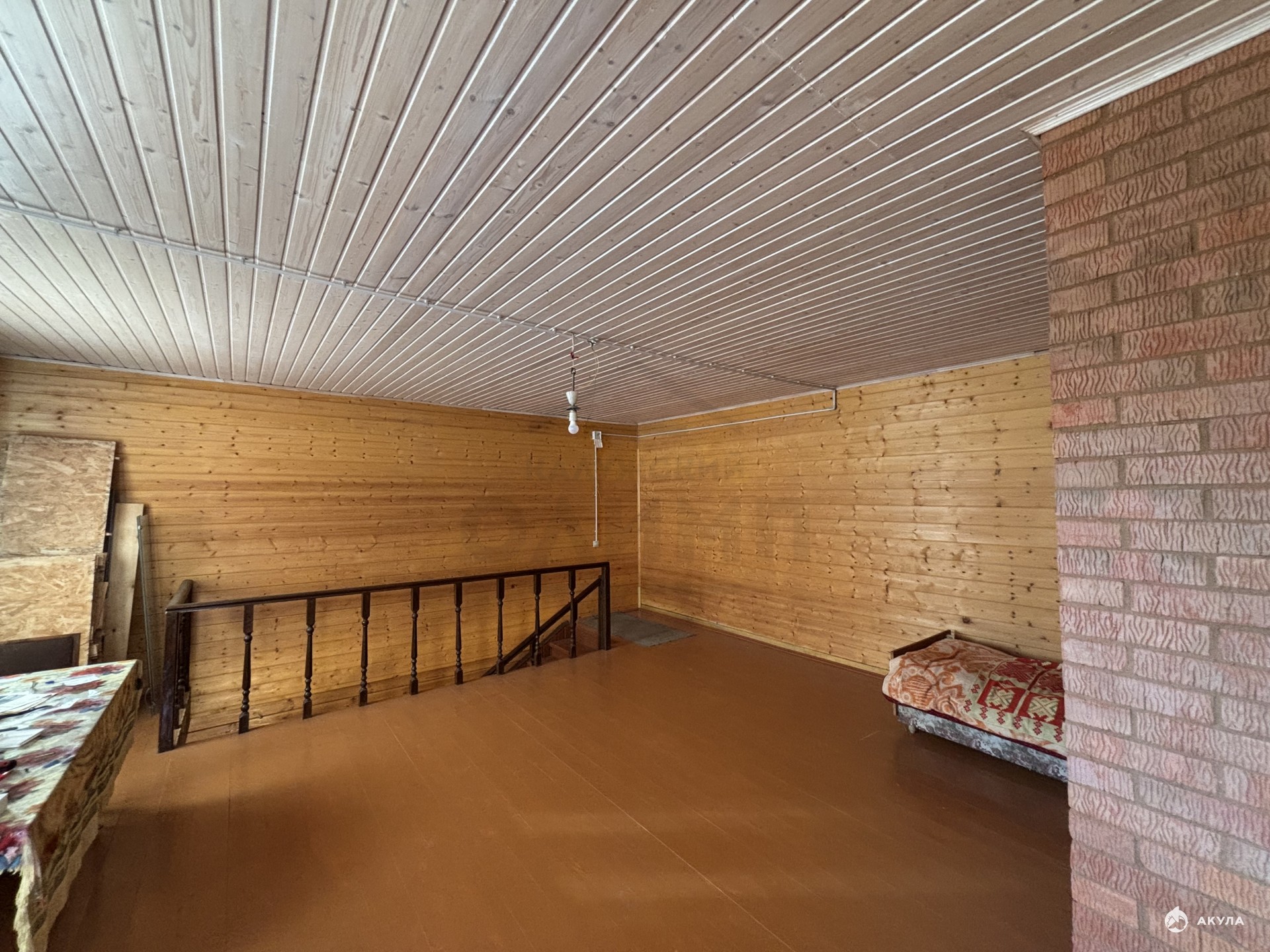 ДОМ двухэтажный , материал стен-кирпич, утеплен и обшит сайдингом.Фундамент ленточный . глубиной 1, 8 м.Крыша покрыта профлистом. На первом этаже дома большая комната с выложенной из кирпича печью, и выходом дымохода через второй этаж . Также на первом этаже расположена кухня, санузел с подведенной канализацией, отведено место для ванной или , по желанию , душевой кабины. На второй этаж ведет удобная широкая деревянная лестница . Рационально использовано место под лестницей - здесь находится вместительная гардеробная. На втором этаже расположены две комнаты отдыха . Все комнаты , кроме кухни и санузла обшиты вагонкой . Забор из профлиста - от дороги и от леса, между соседями справа и слева - сетка рабица. Со стороны дороги - 4х метровые ворота, также имеется калитка с выходом в лес. КОММУНИКАЦИИ: Электричество в доме, вода - колодец 7 колец, канализация - септик , газ- по границе участка ( у соседей заведён в дом) , печь в доме . Дом предназначен для постоянного круглогодичного проживания . Звоните ! Показ в любое удобное время !