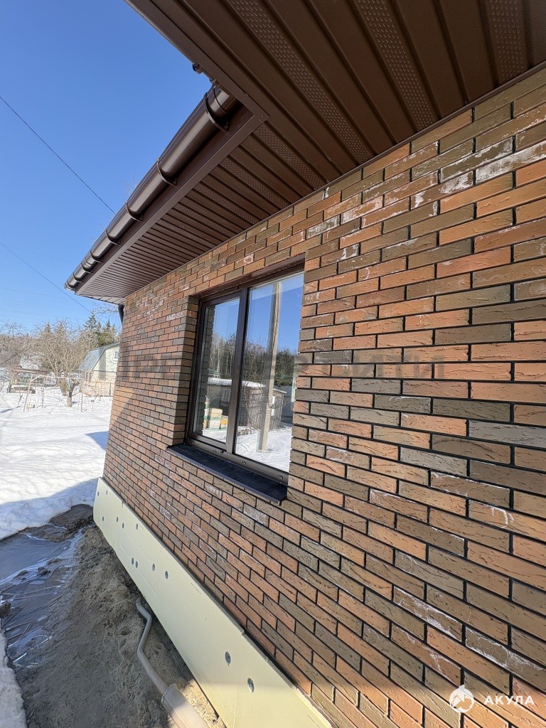 Одноэтаэжный дом из газоблока, обложен кирпичем Браер, современные качественные окна ПВХ.