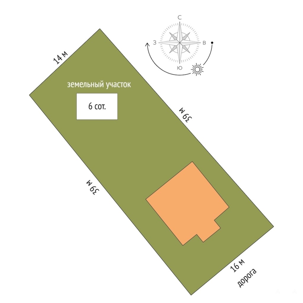 Участок: Площадь: 6 соток Форма: прямоугольная Особенности: ровный