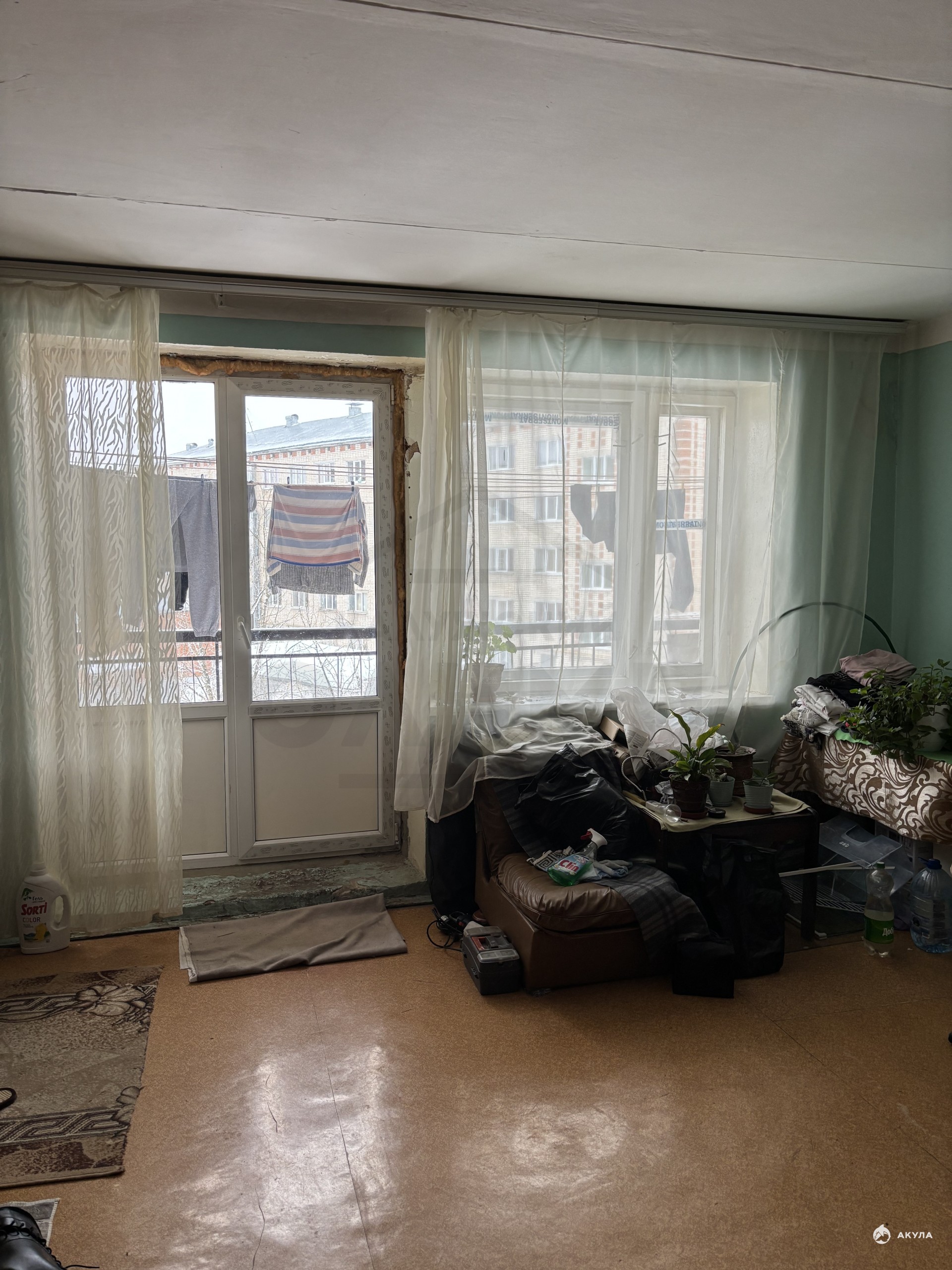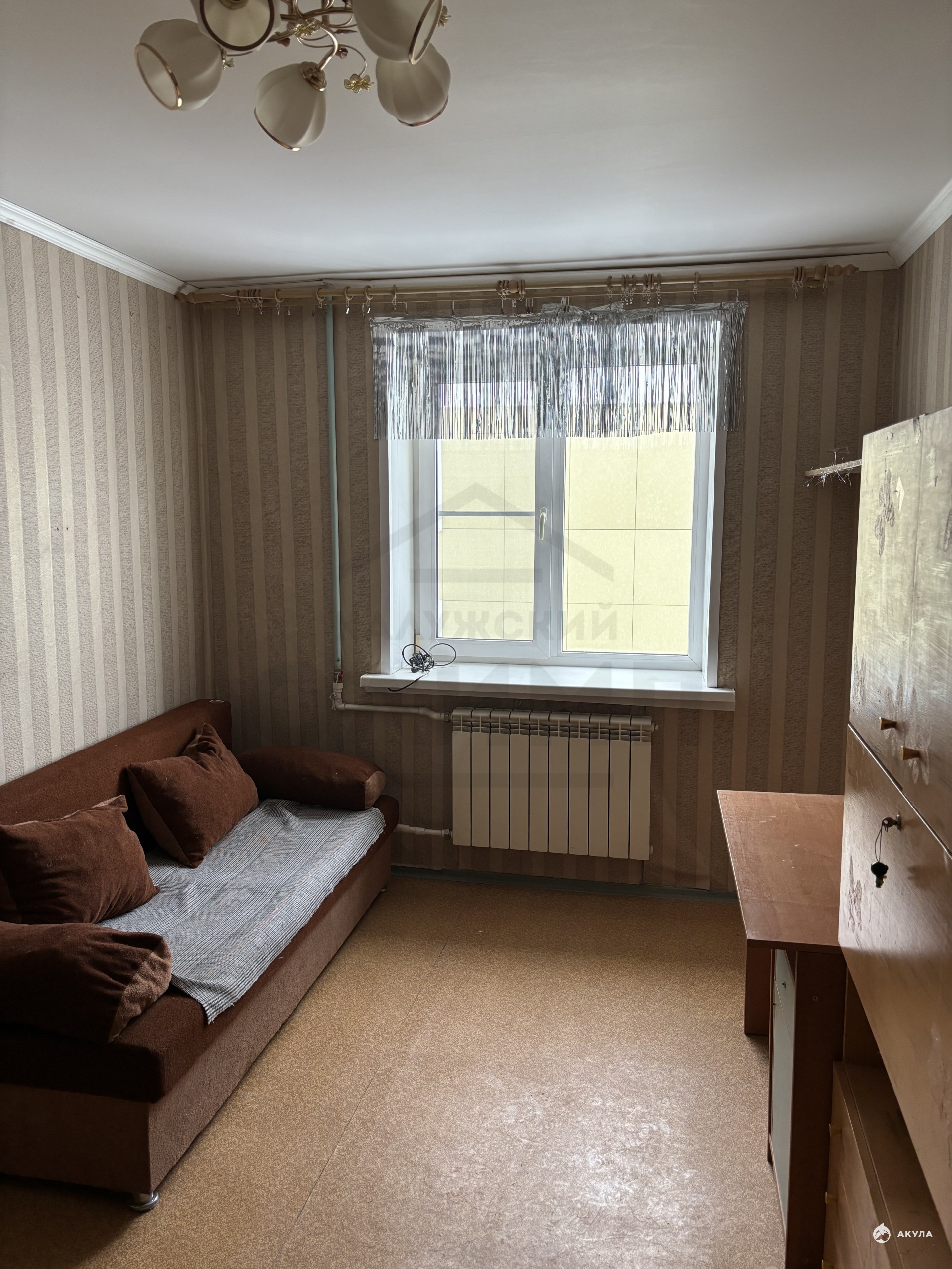 В комнате пластиковое окно , натяжной потолок .