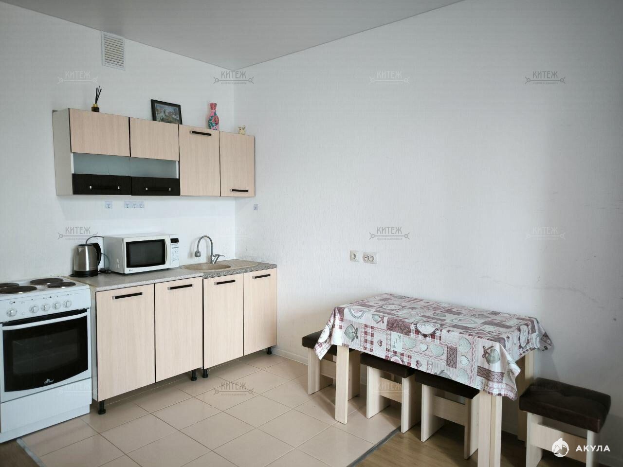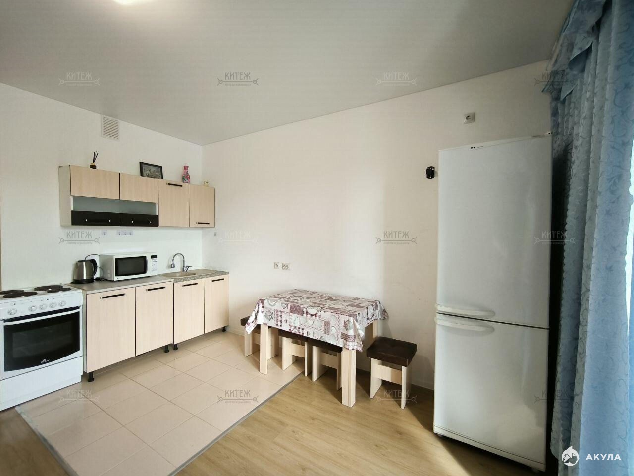 ✅ Остаются кухонный гарнитур, вытяжка, микроволновка, электрическая плита с духовкой, стиральная машина авт., холодильник, диван, прихожая, стол и стулья, не угловая.