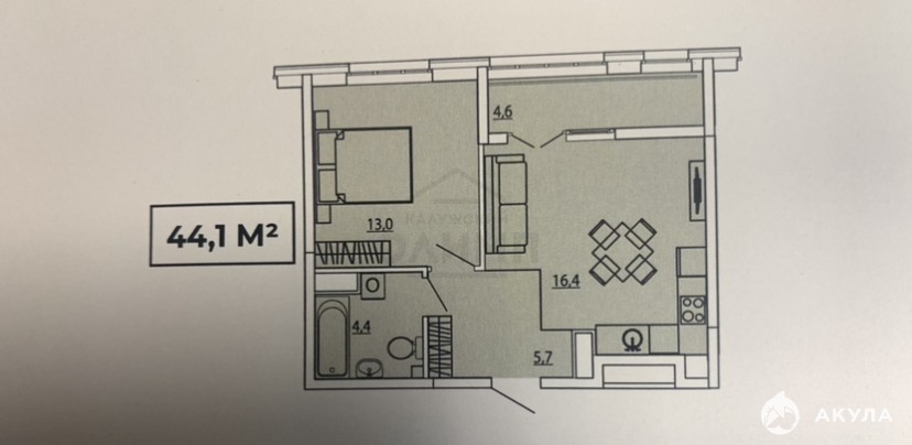 1 комнaтные квартиpы от 36, 8 кв .м. до 44 кв.м.