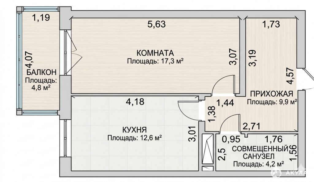 - 17,3 м²