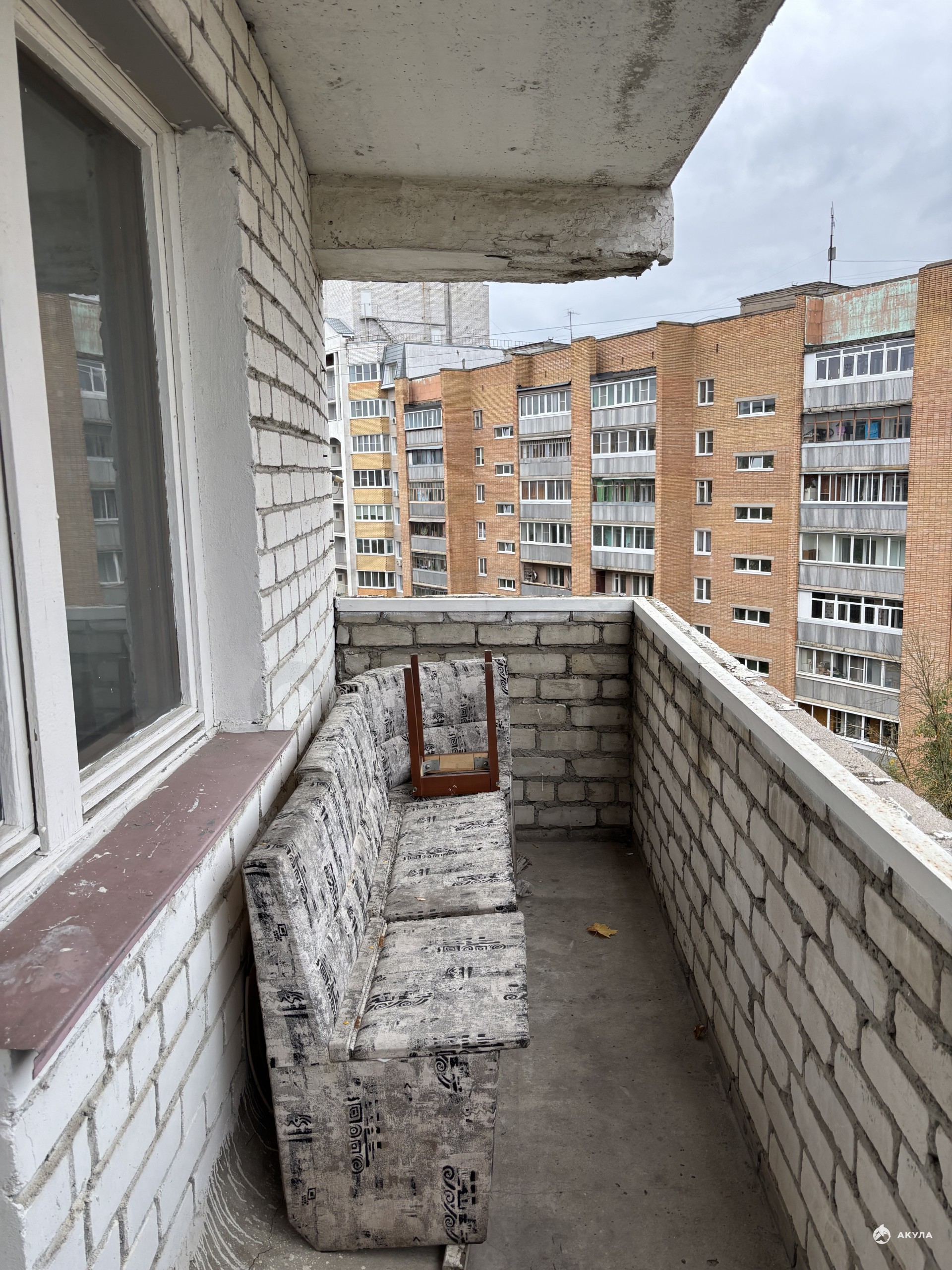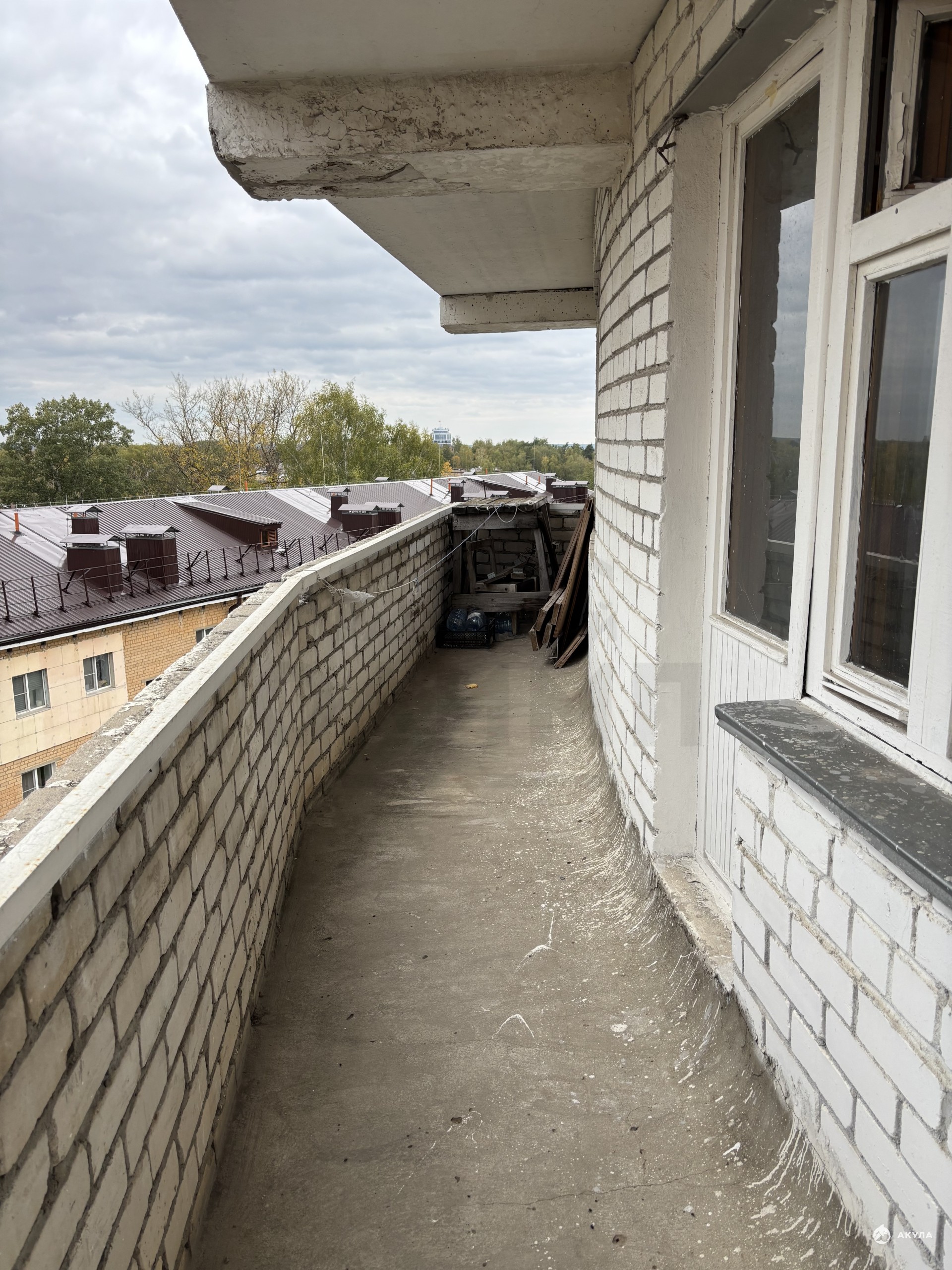 Огромная лоджия с прекрасным видом, и выходом из зала и кухни.