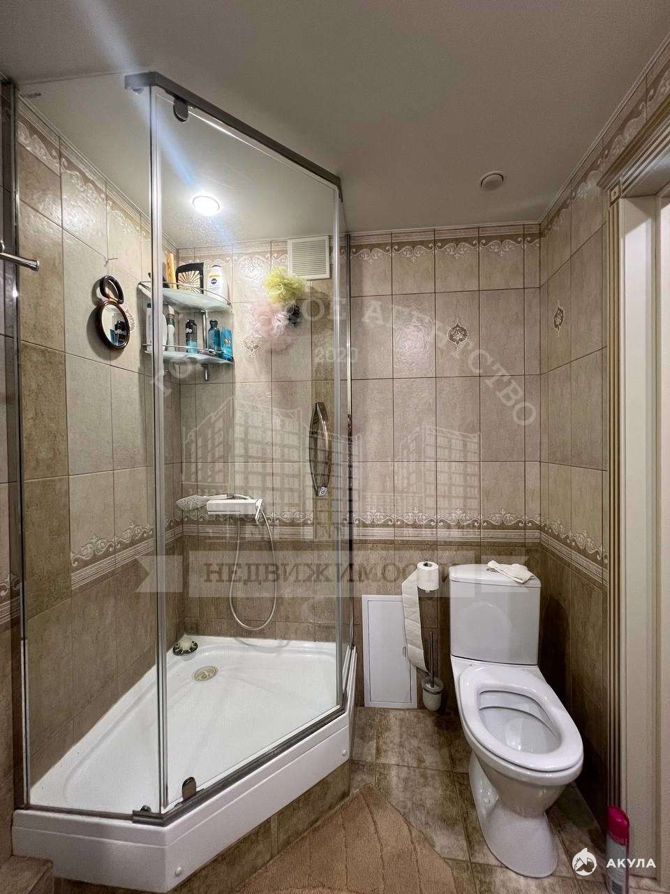 В ванной на стенах и полу современная плитка, новая сантехника.