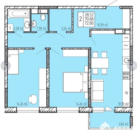 - 28,52 м²