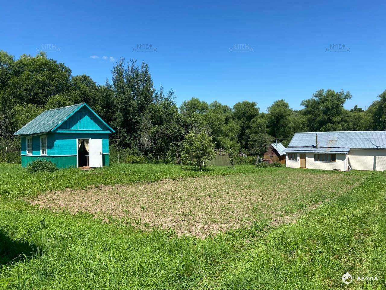- Имеется баня из бруса, погреб, сарай, 2 кирпичных гаража, летний домик для отдыха, теплица.