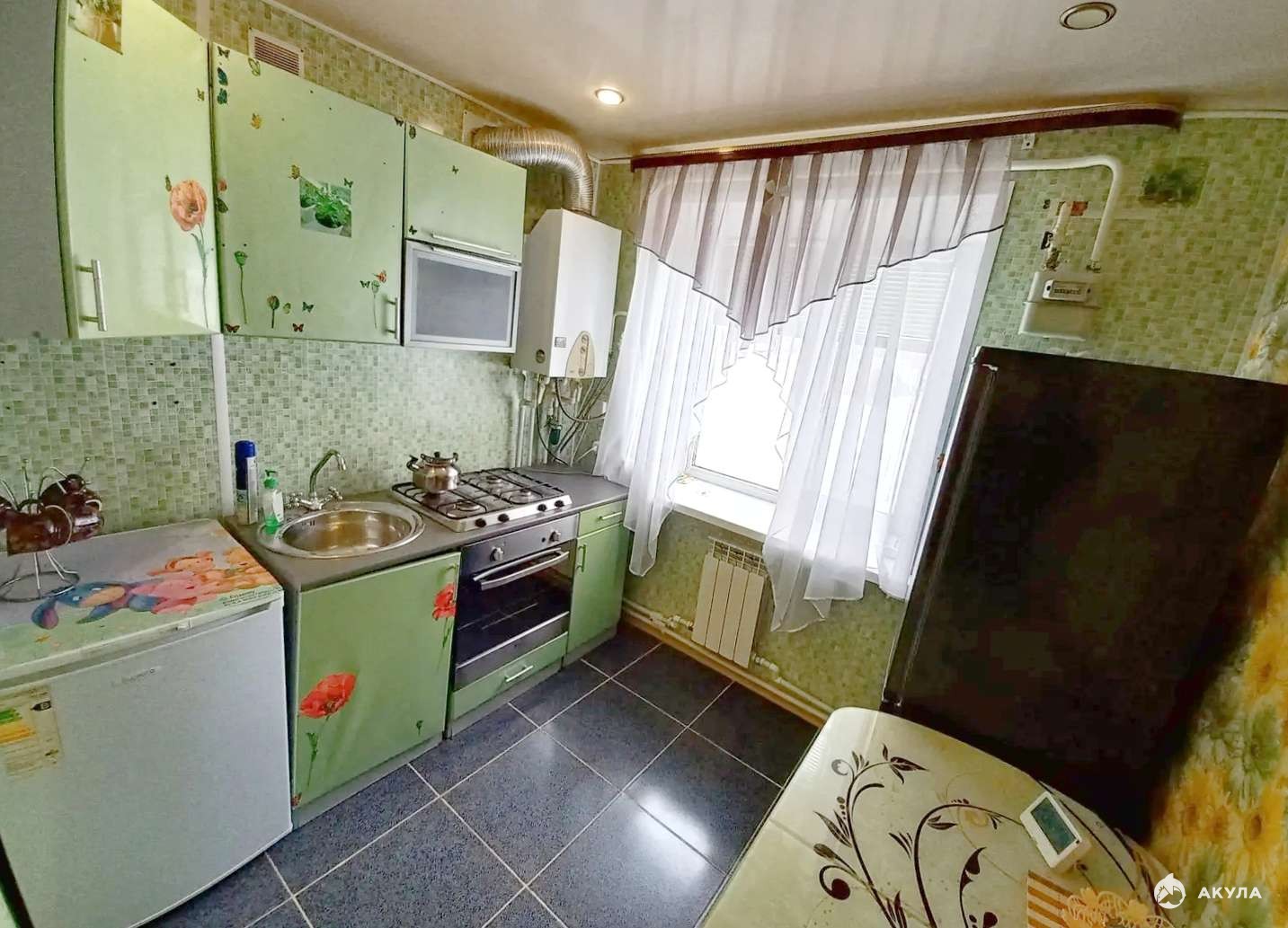В квартире сделан капитальный ремонт: натяжной потолок, окна пластиковые, двери, кафель пол на кухне и в санузле. Квартира не угловая.