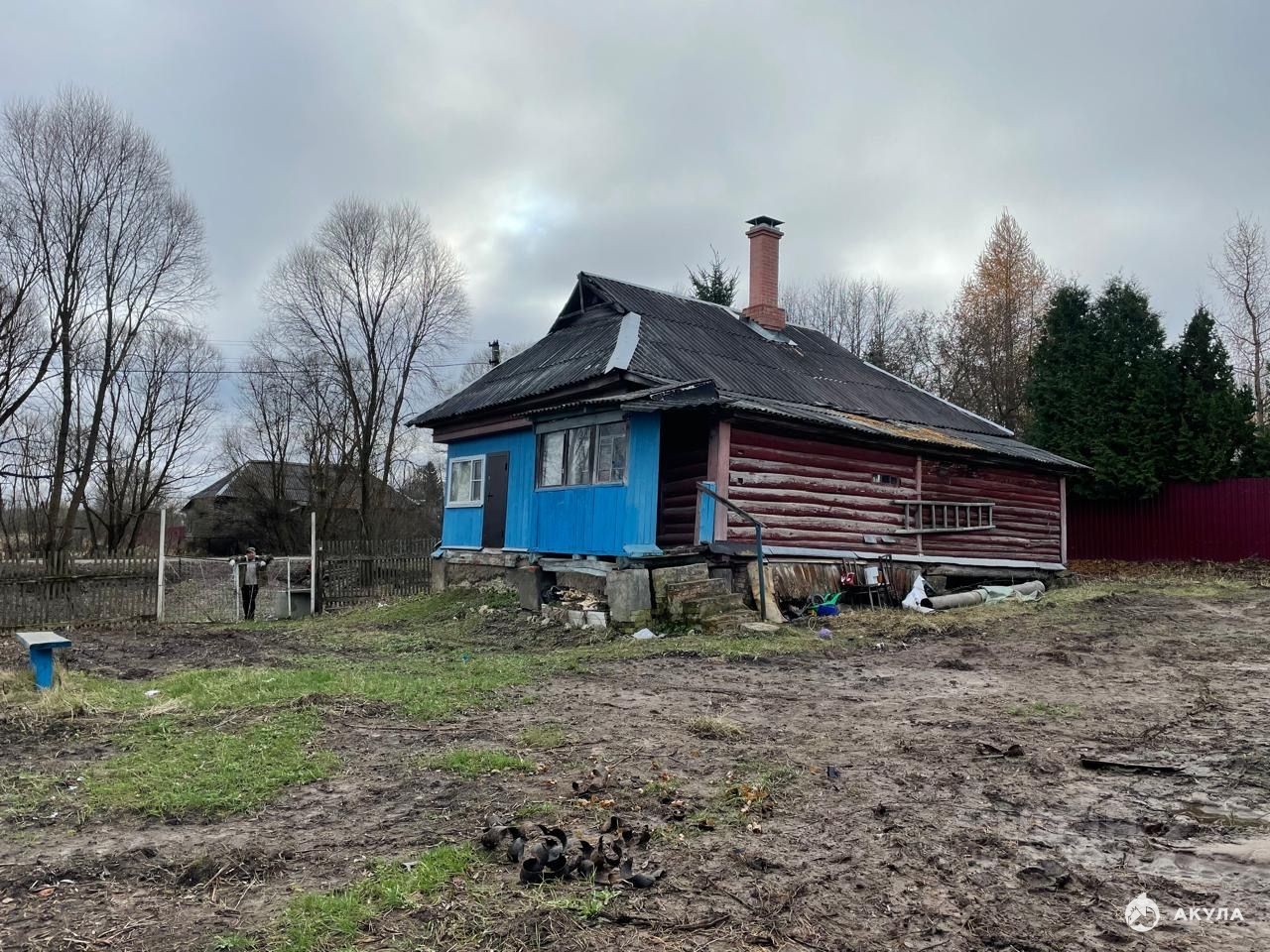 Дом 57 кв.м. (фундамент и сруб в нормальном состоянии, пристройка требует демонтажа), печь.